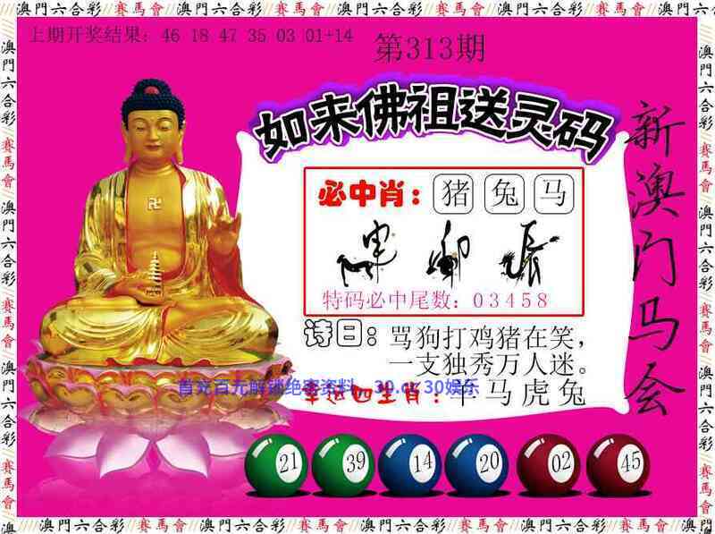 314期解佛祖送灵码图 诗日:三四今期定开来,蓝蓝的天空特别 解送七肖:狗马羊鸡龙蛇兔 幸运四生肖:狗马羊鸡 开:發00准 |